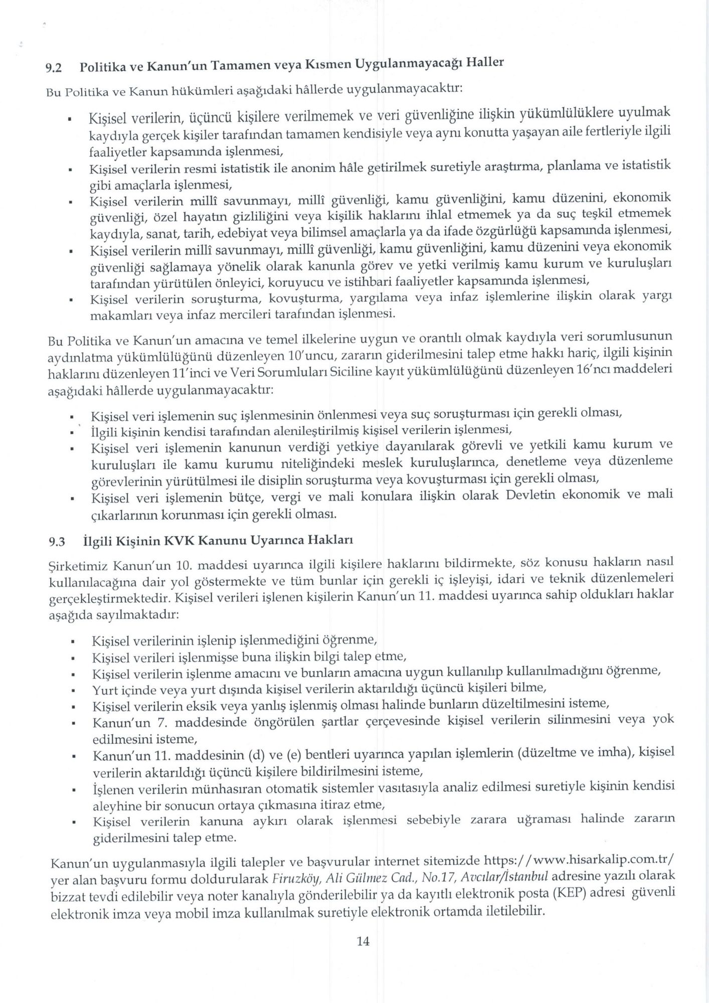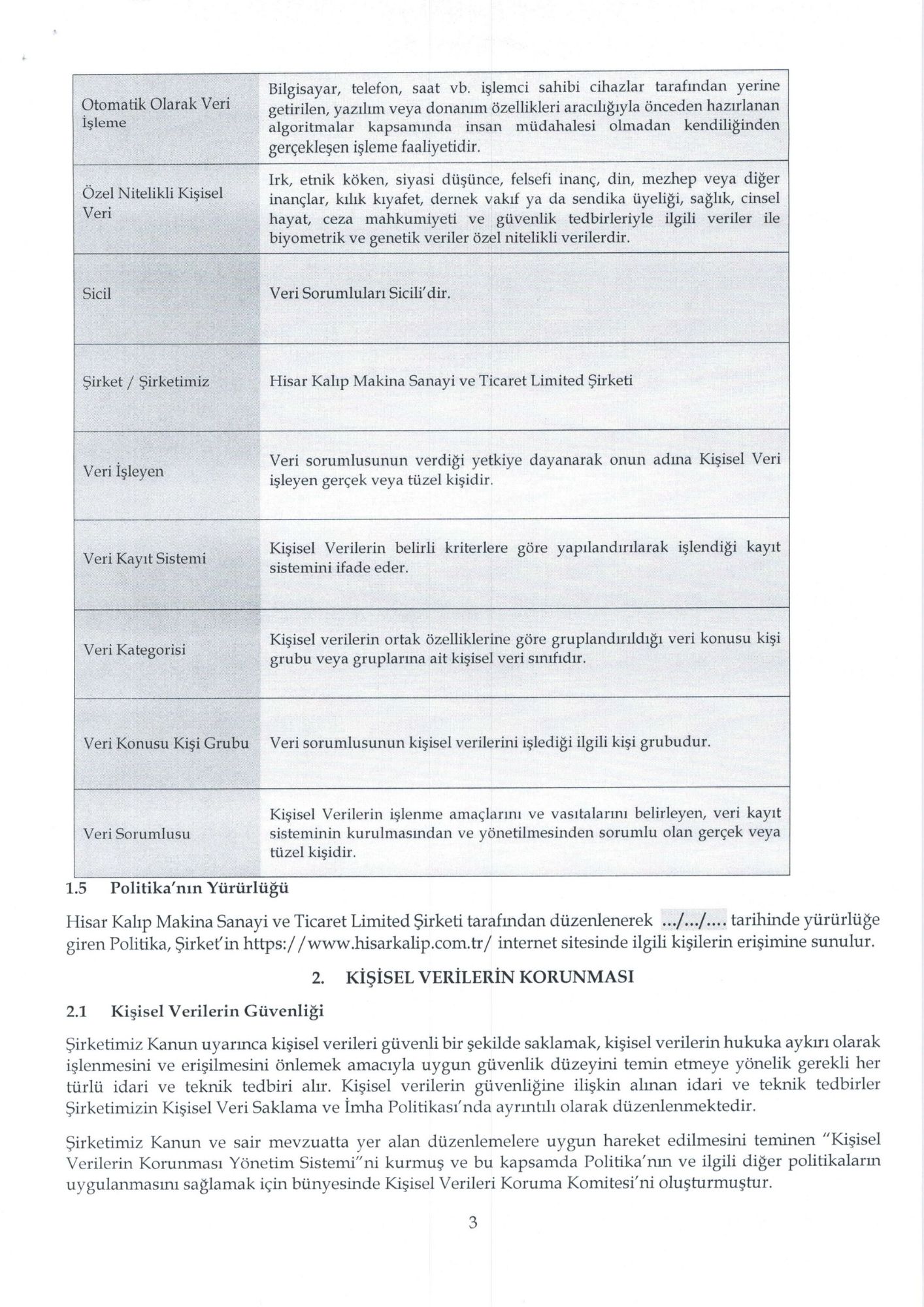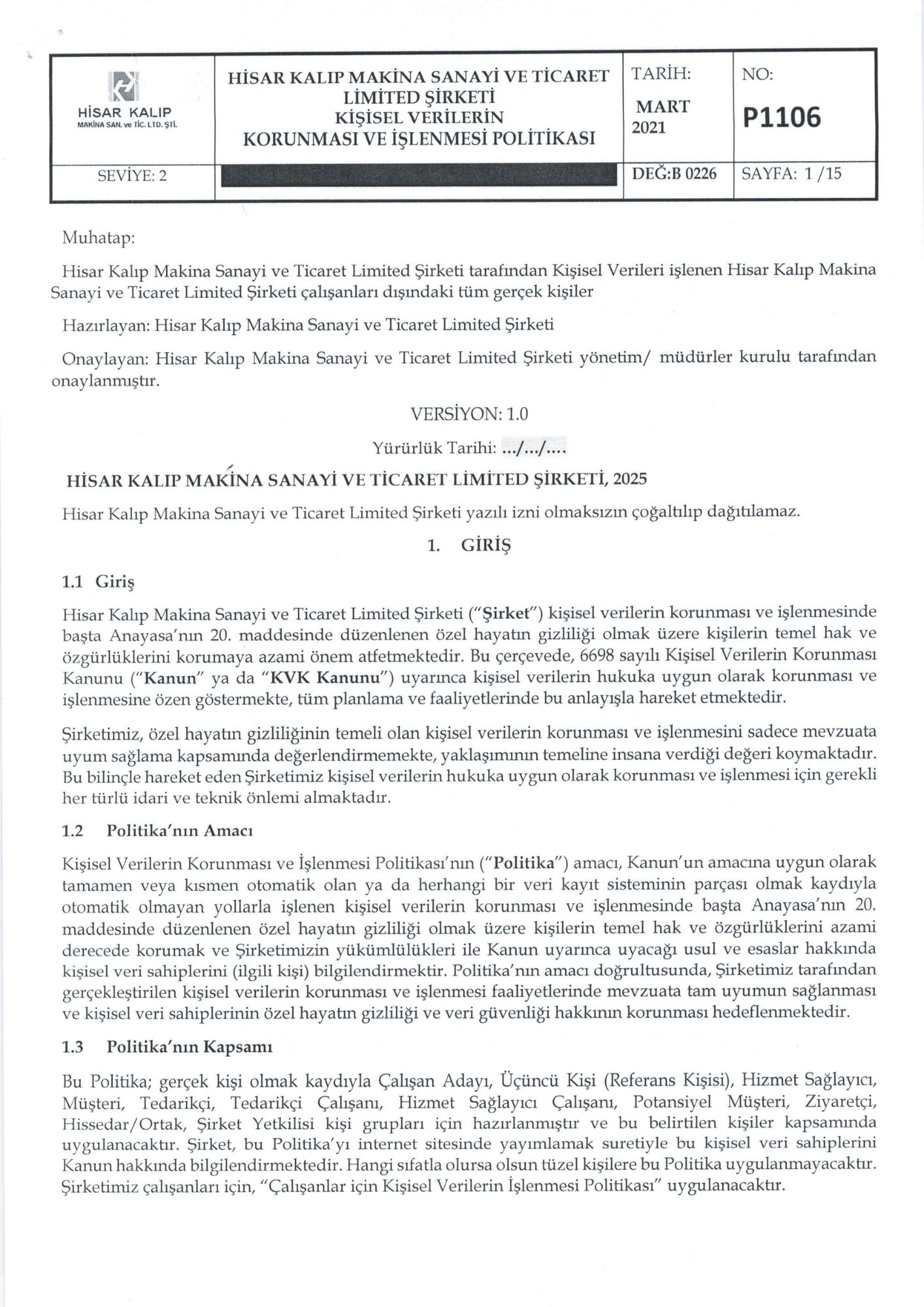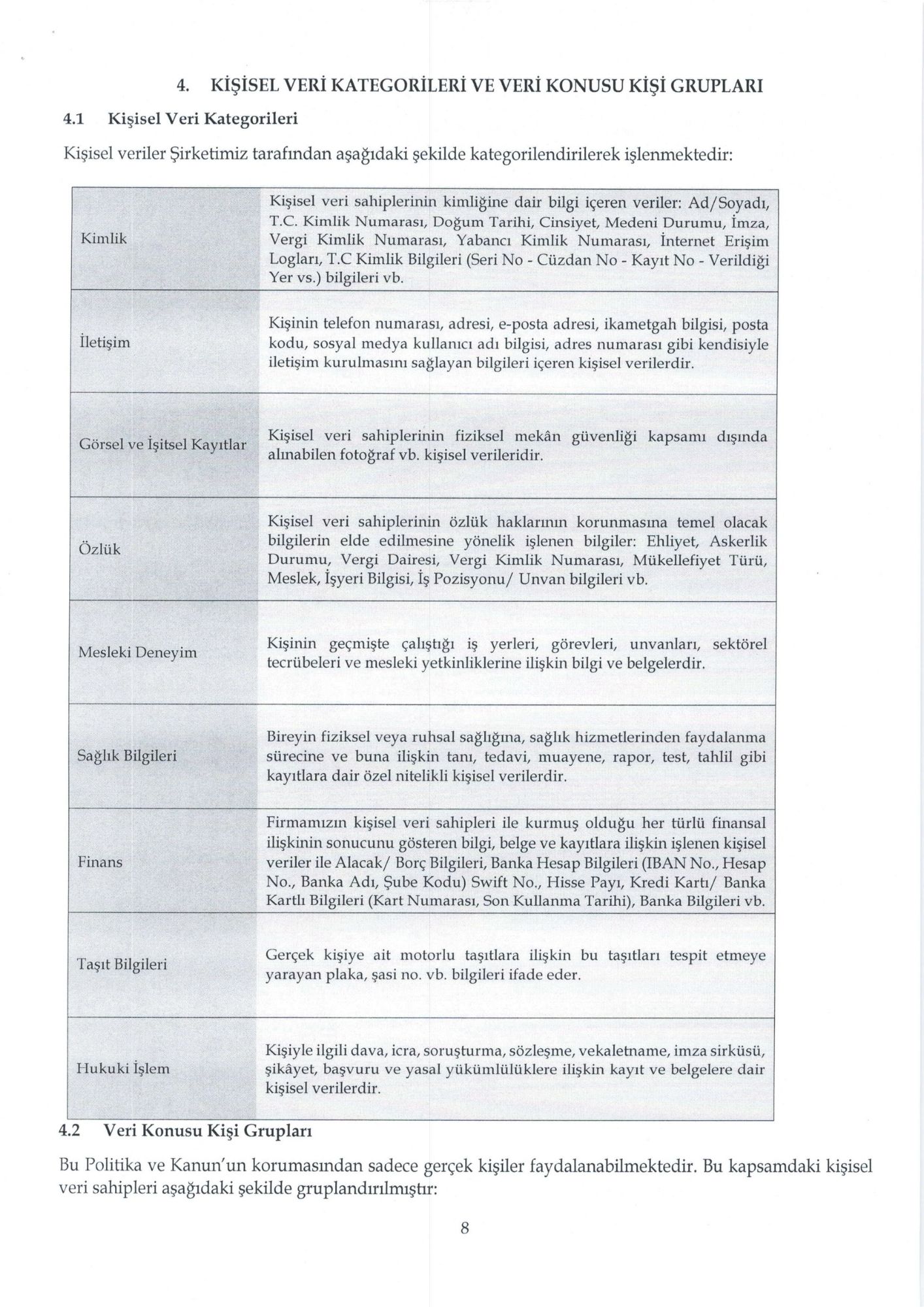 Kisisel Verilerin Korunmasi ve islenmesi Politikasi